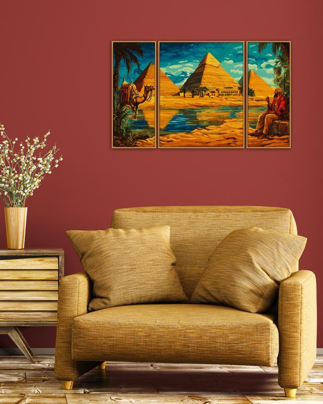 Pyramides, palmiers et temples mystiques : le triptyque "Égypte" est comme un court voyage en Orient. Les couleurs chaudes et le flair exotique vous permettent de vous immerger dans une culture fascinante tout en peignant. Comme de nombreuses zones sont grandes et clairement définies, le motif convient également aux débutants ambitieux qui souhaitent s'attaquer à un projet de plus grande envergure.